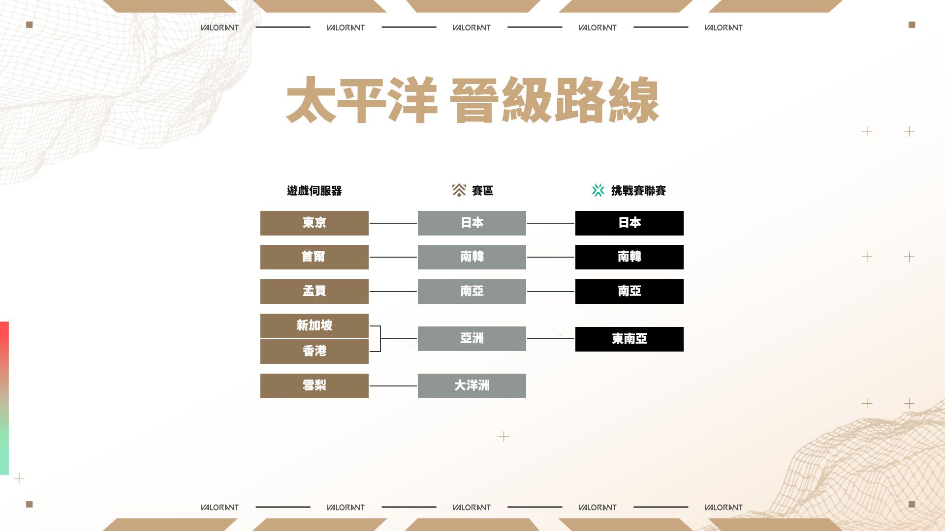 在太平洋賽區,來自東南亞、日本與韓國挑戰賽的冠軍隊伍將各自獲得直接晉級「Champions晉級之路」的名額。最後一個名額將透過最終資格賽決定,參賽隊伍包括來自南亞的冠軍隊伍、大洋洲的冠軍隊伍,以及東南亞的第2與第3種子隊伍。