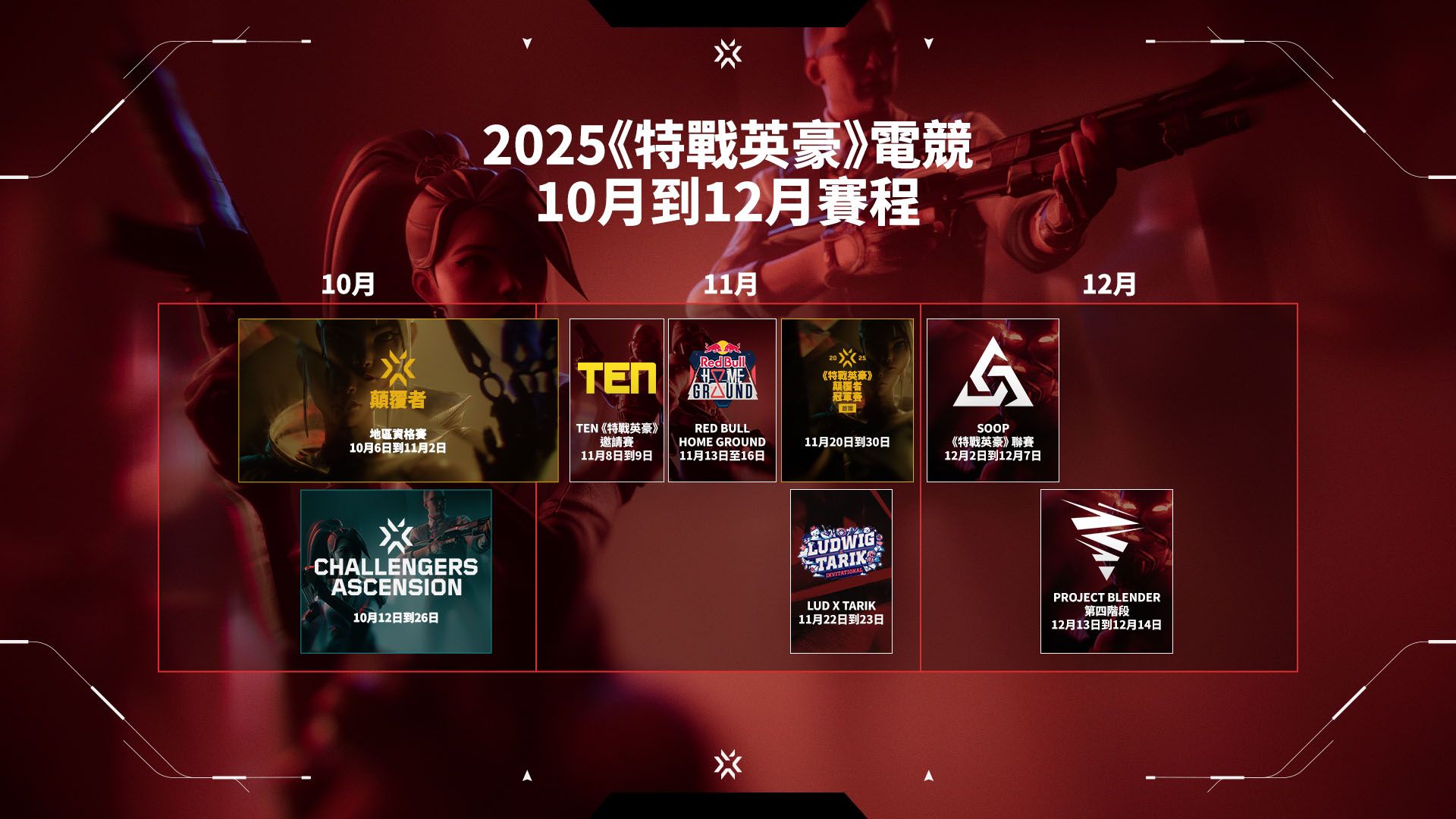 巴黎Champions將為2025年難忘的VCT賽季畫下句點,但精彩賽事並不就此結束。十月起,全球的粉絲將迎來滿檔的賽事週末,每週都有比賽與活動舉行!其中包括晉級賽、顛覆者賽事,以及更多VCT Partner Series。