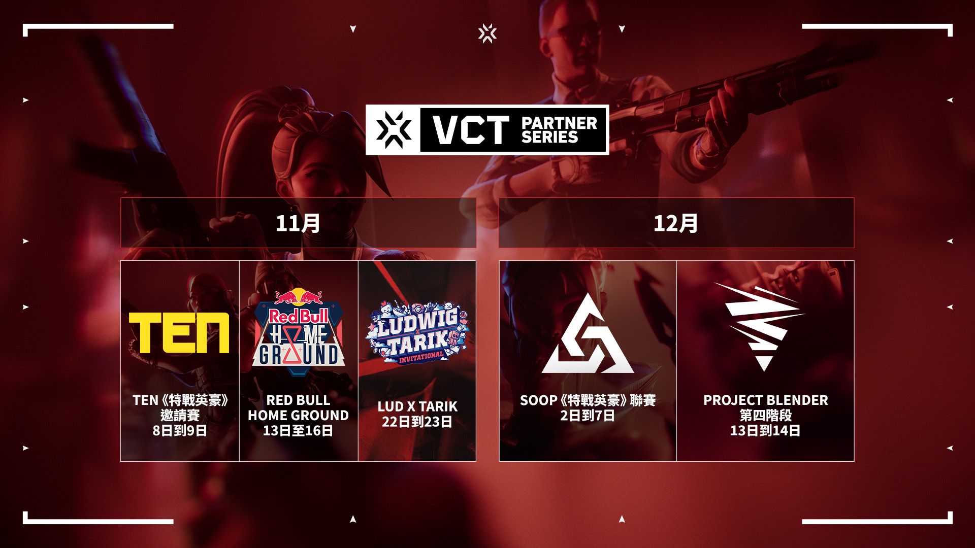 今年稍早,我們推出了VCT Partner Series,這是官方VCT賽季間舉行的大型賽事。這些比賽將帶來國際對決、新鮮競爭,並提供新興隊伍與世界頂尖隊伍一較高下的舞台。今天,我們準備分享更多賽事,完整呈現Champions後的賽程。